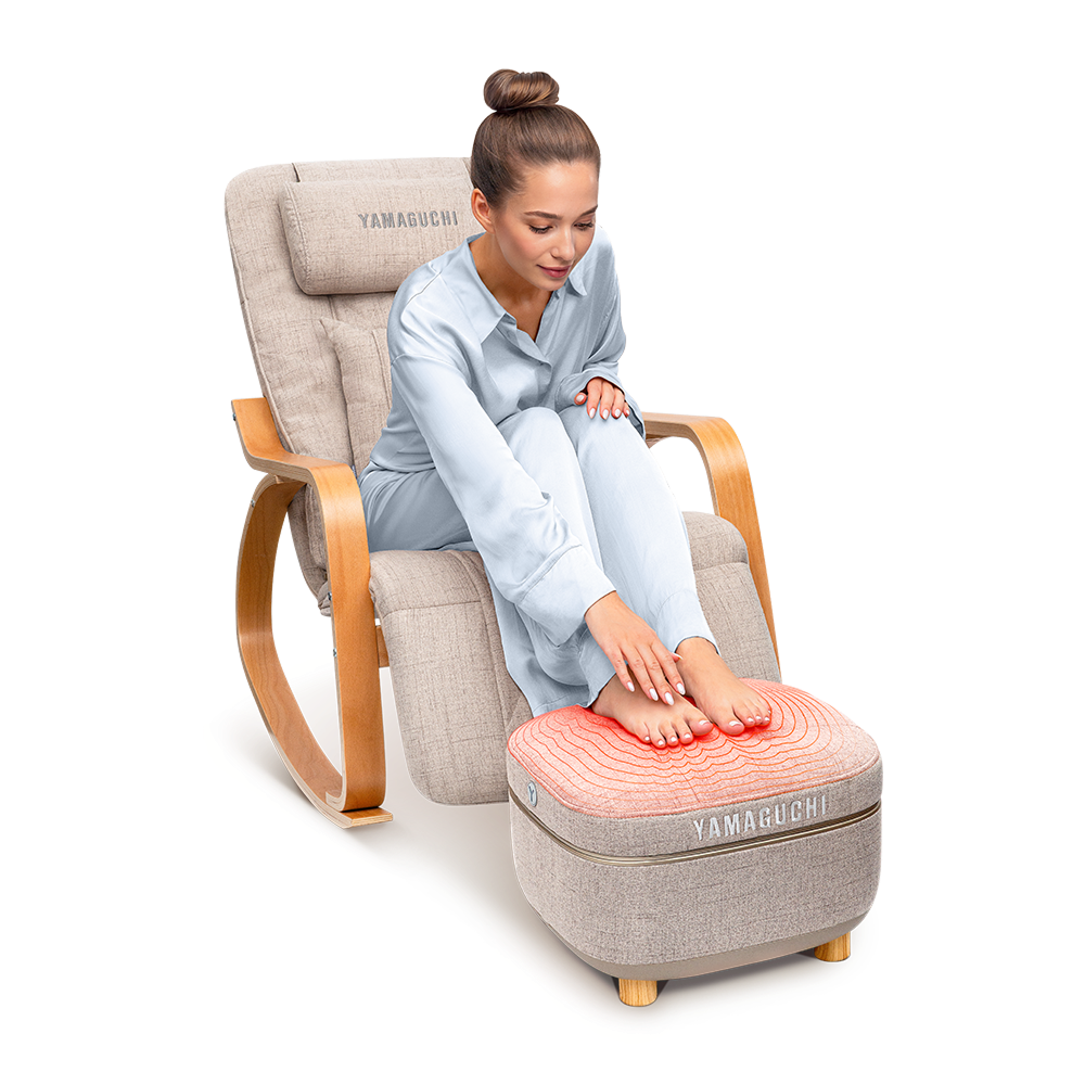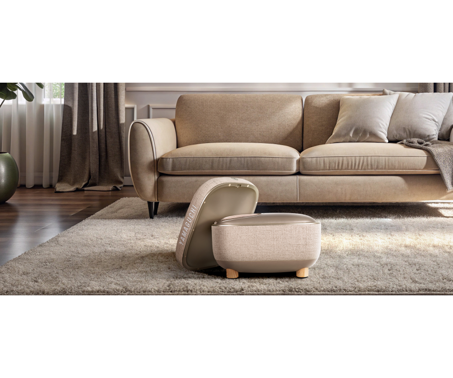 Yamaguchi Capsula Beige — интерьерный массажер для ног в формате стильного пуфика 2 в 1. Он выполняет глубокий плантарный массаж с трофическим эффектом: мягко прорабатывает ахиллово сухожилие, свод стопы, область пяток и икроножные мышцы, помогая снять усталость, тяжесть и дискомфорт в ногах.